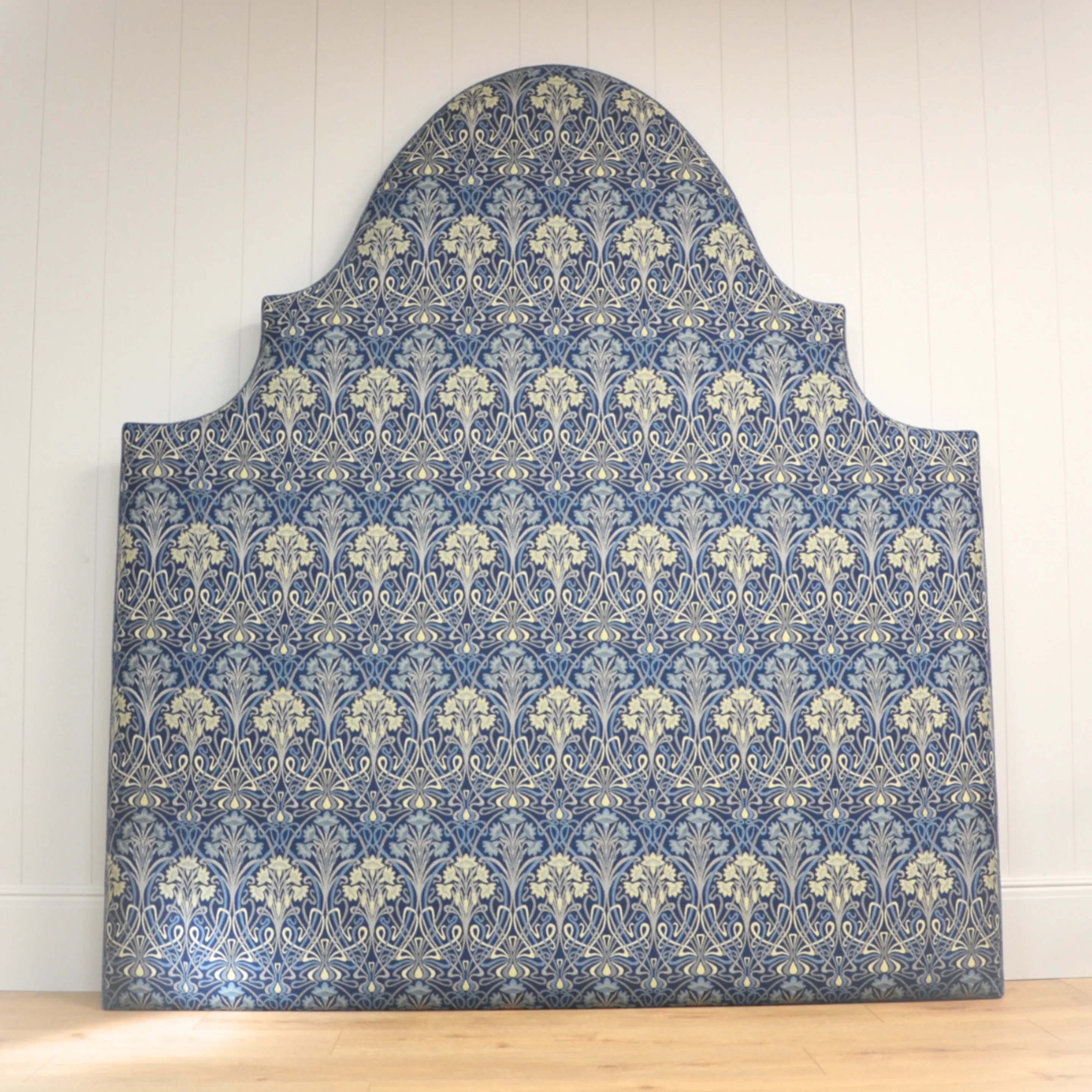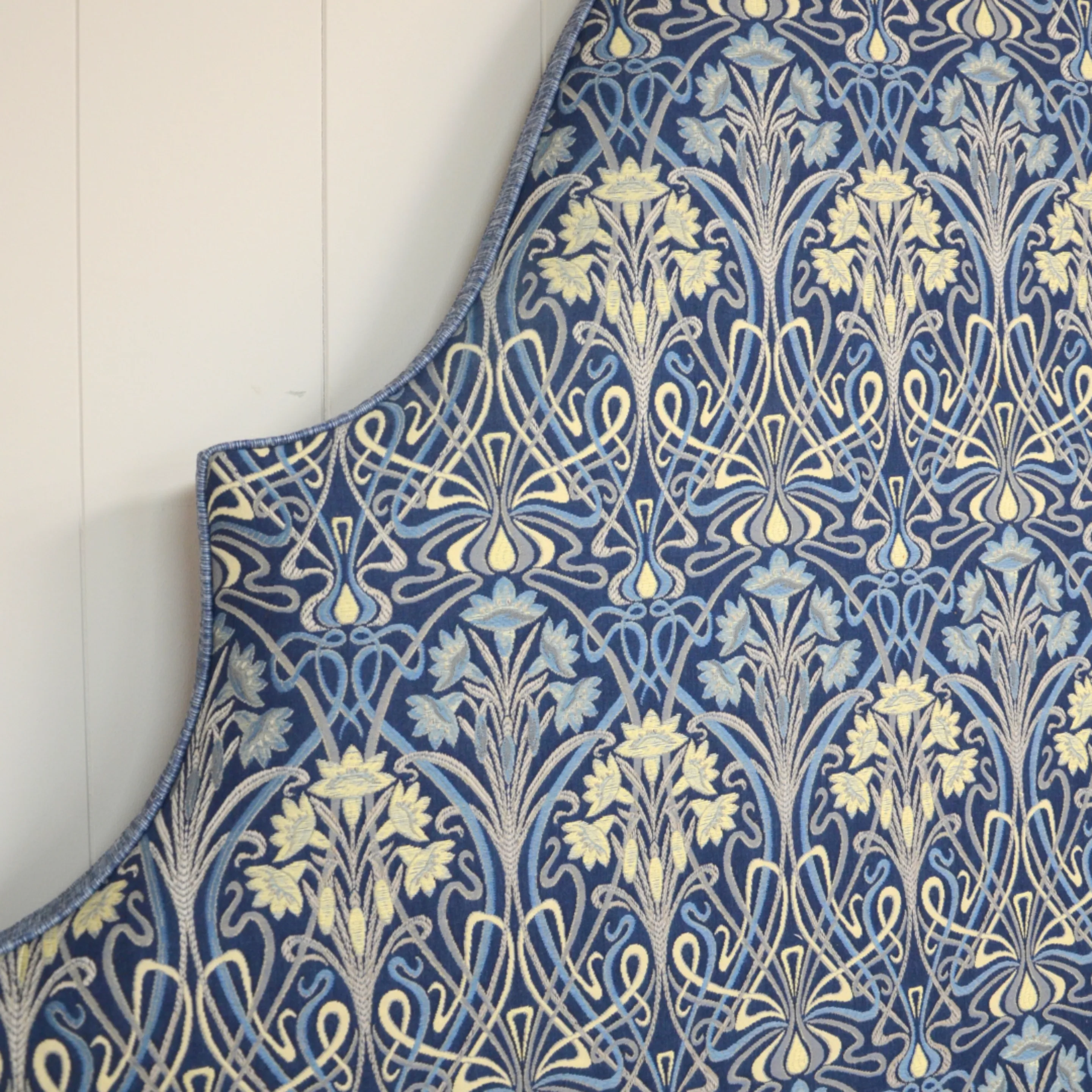 This grand bespoke headboard looks incredible covered in the classic print. The perfect symmetry is very satisfying to the eye. It has been contrast piped with a complimentary piping, tracing the edges of the frame to create a clean, sharp finish.