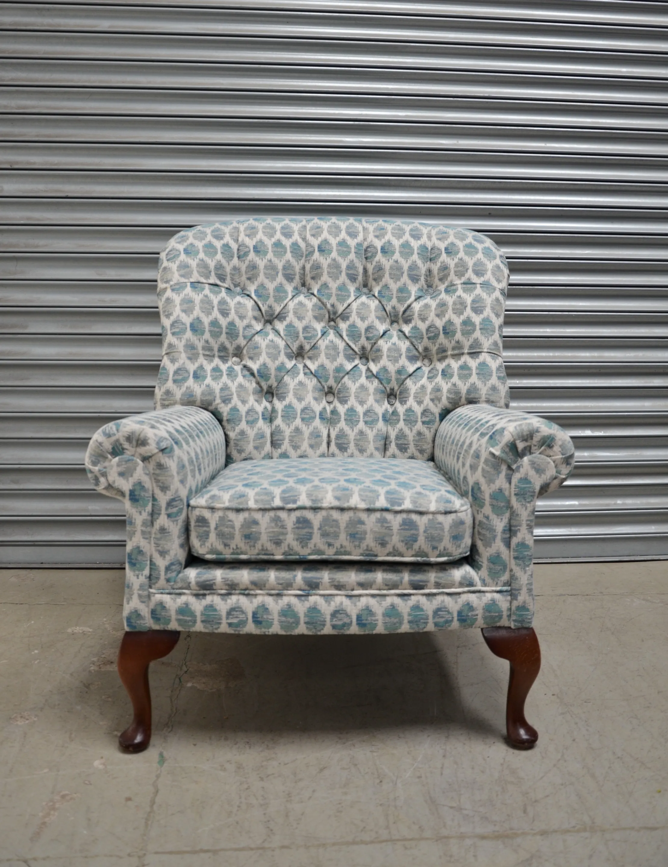 Stripped and recovered in a stunning Baker lifestyle weave, the chair sits in our client’s kitchen/diner and complements the colours of the kitchen perfectly.