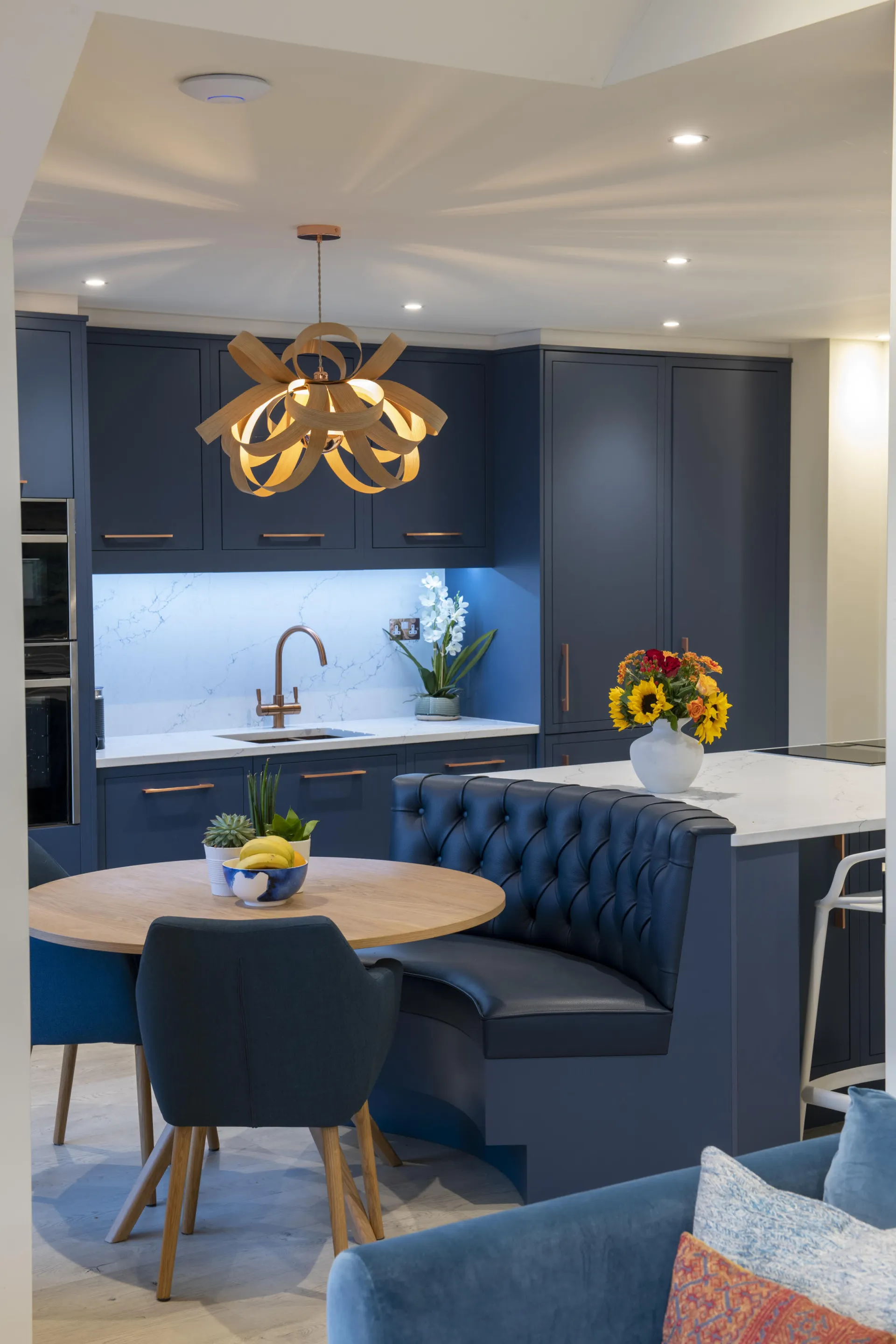 A bespoke custom made sofa we handcrafted in our Oxfordshire workshop. The fabric is beautifully aligned, and complements the square shape of the…