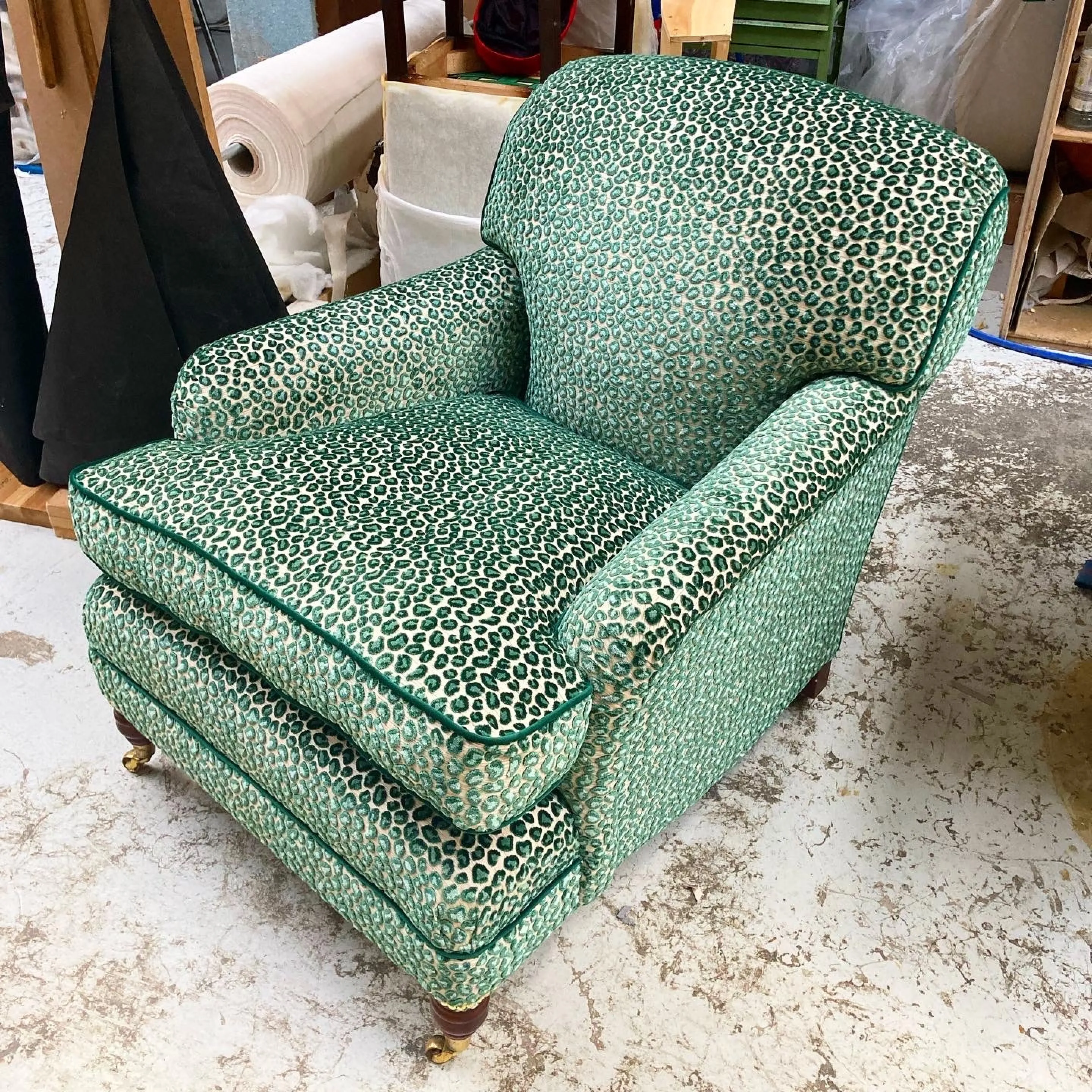 This stunning chair has been brought it to life with this green patterned fabric from Sanderson. We used a contrast piping to enhance the beautiful…