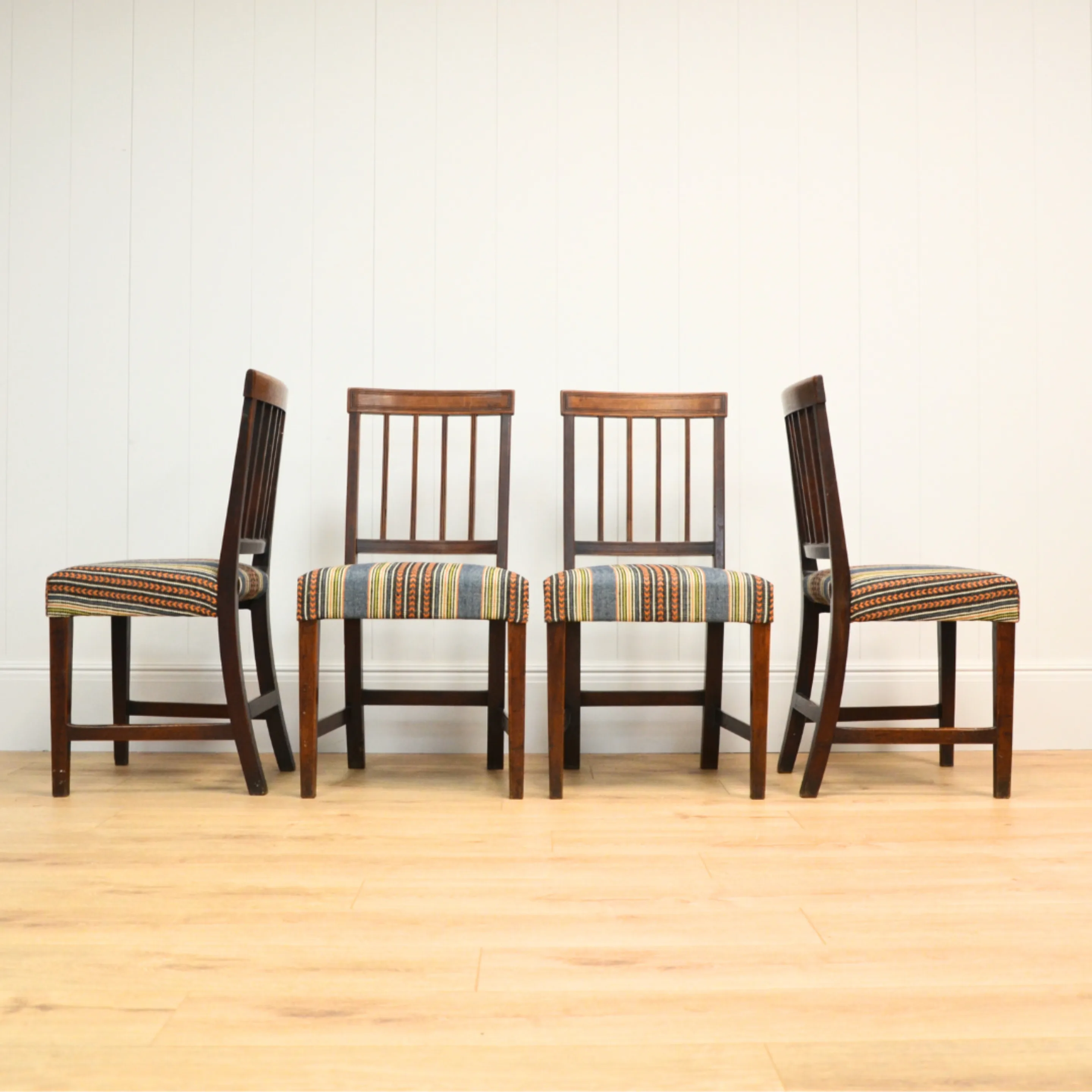 Re-upholstering dining chairs is a simple and effective way to elevate your dining space. These lovely dark wooden frame chairs have been re-upholstered in a classic Mulberry Stripe that complements the frame perfectly