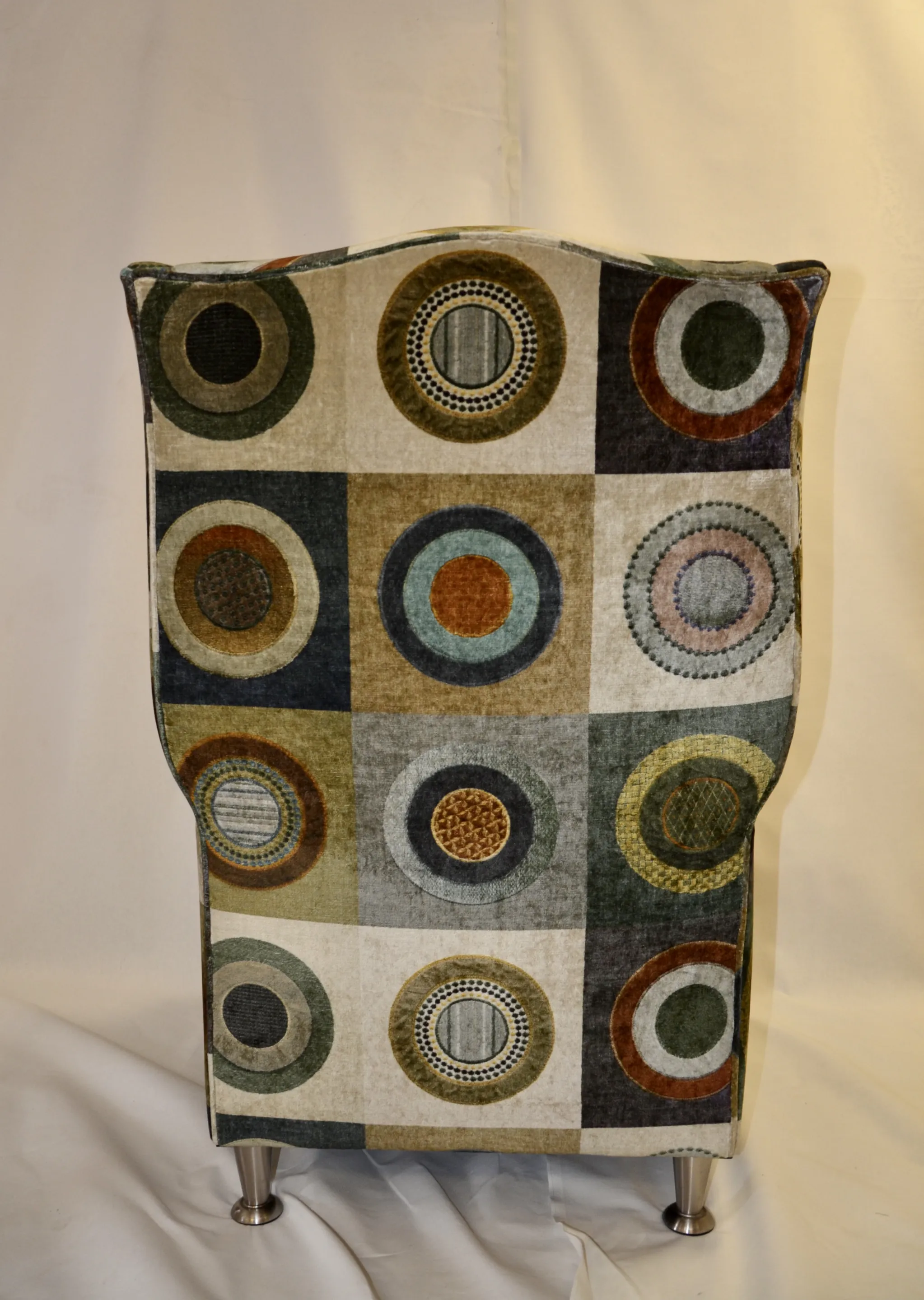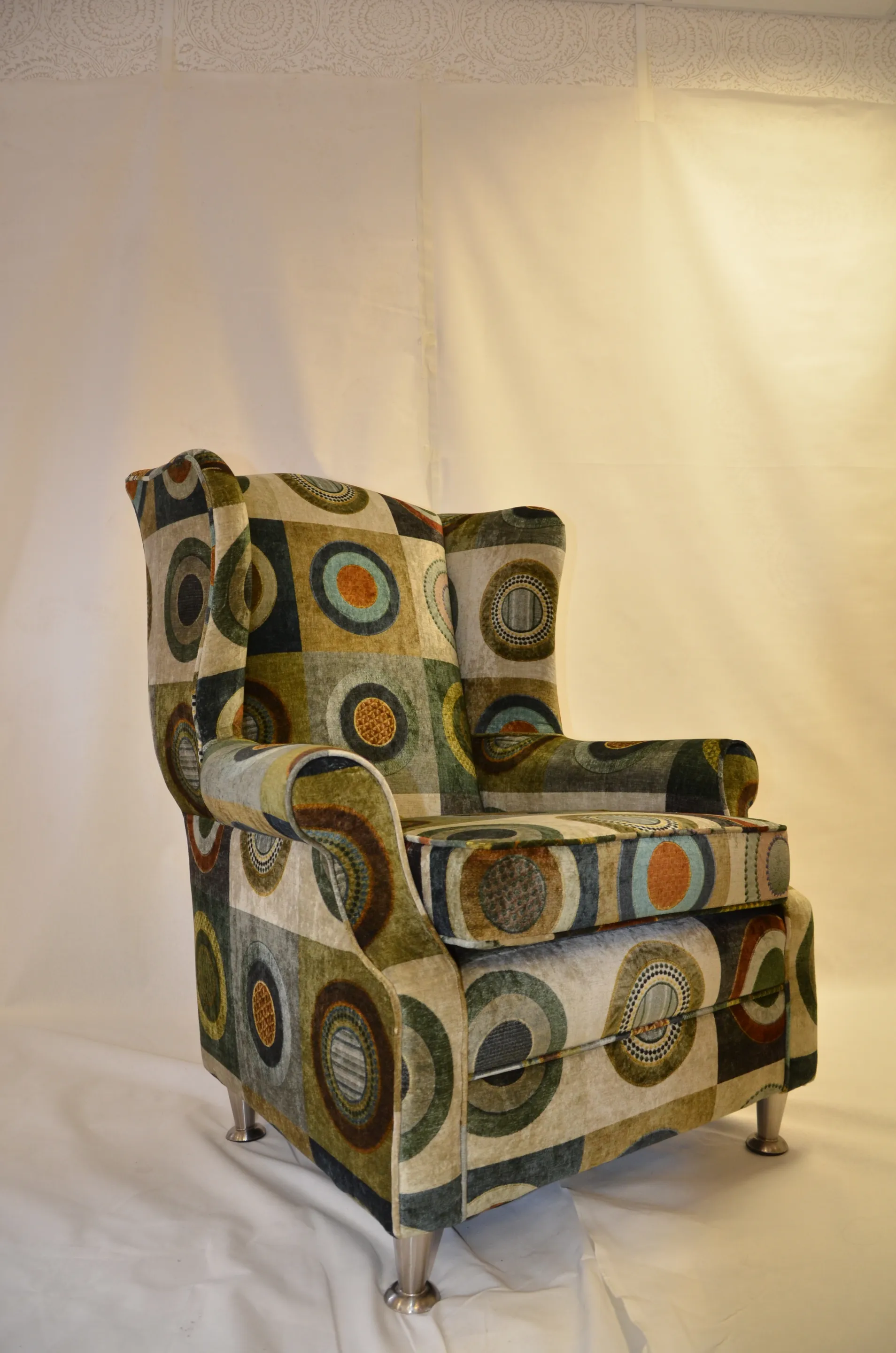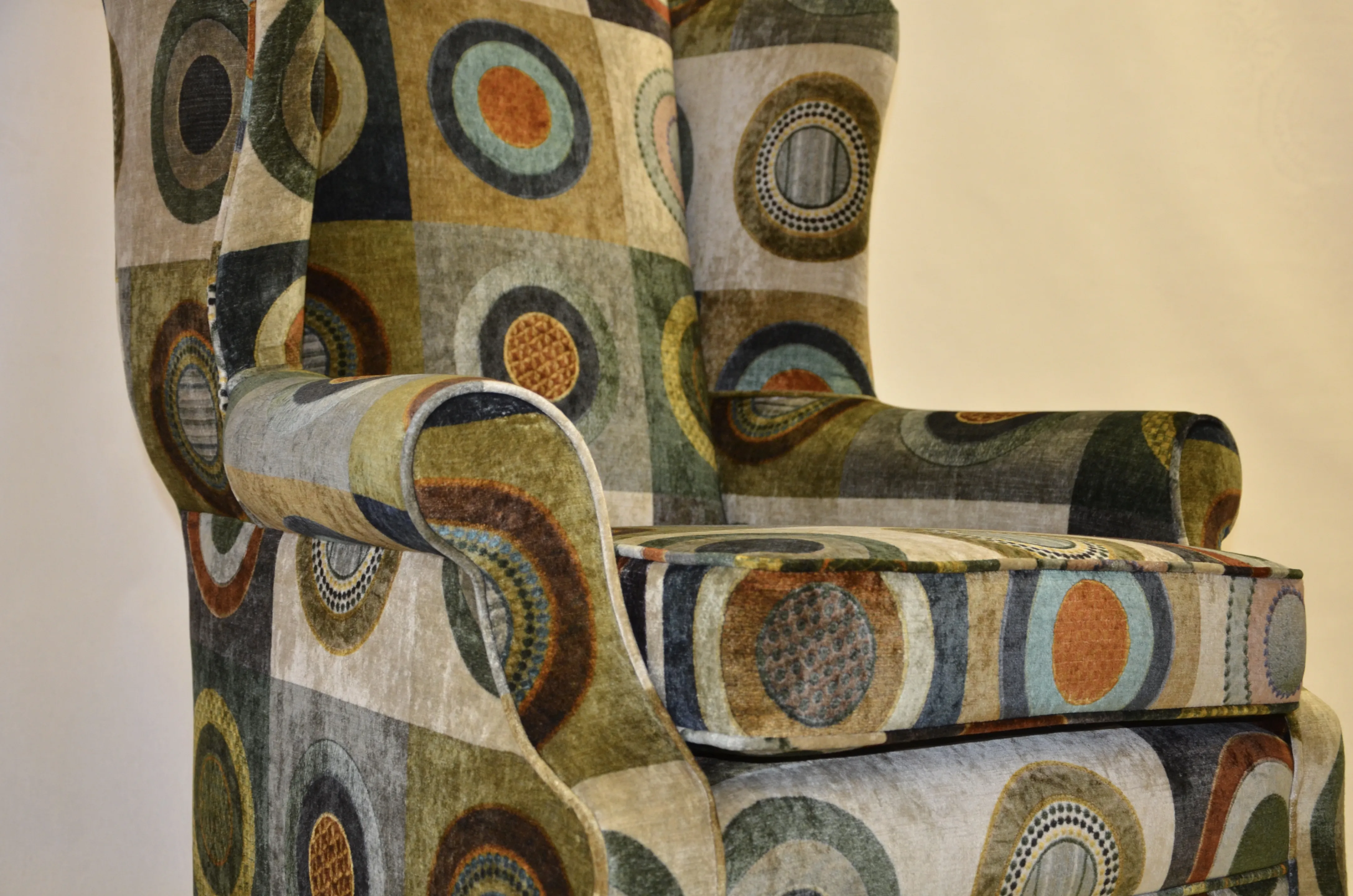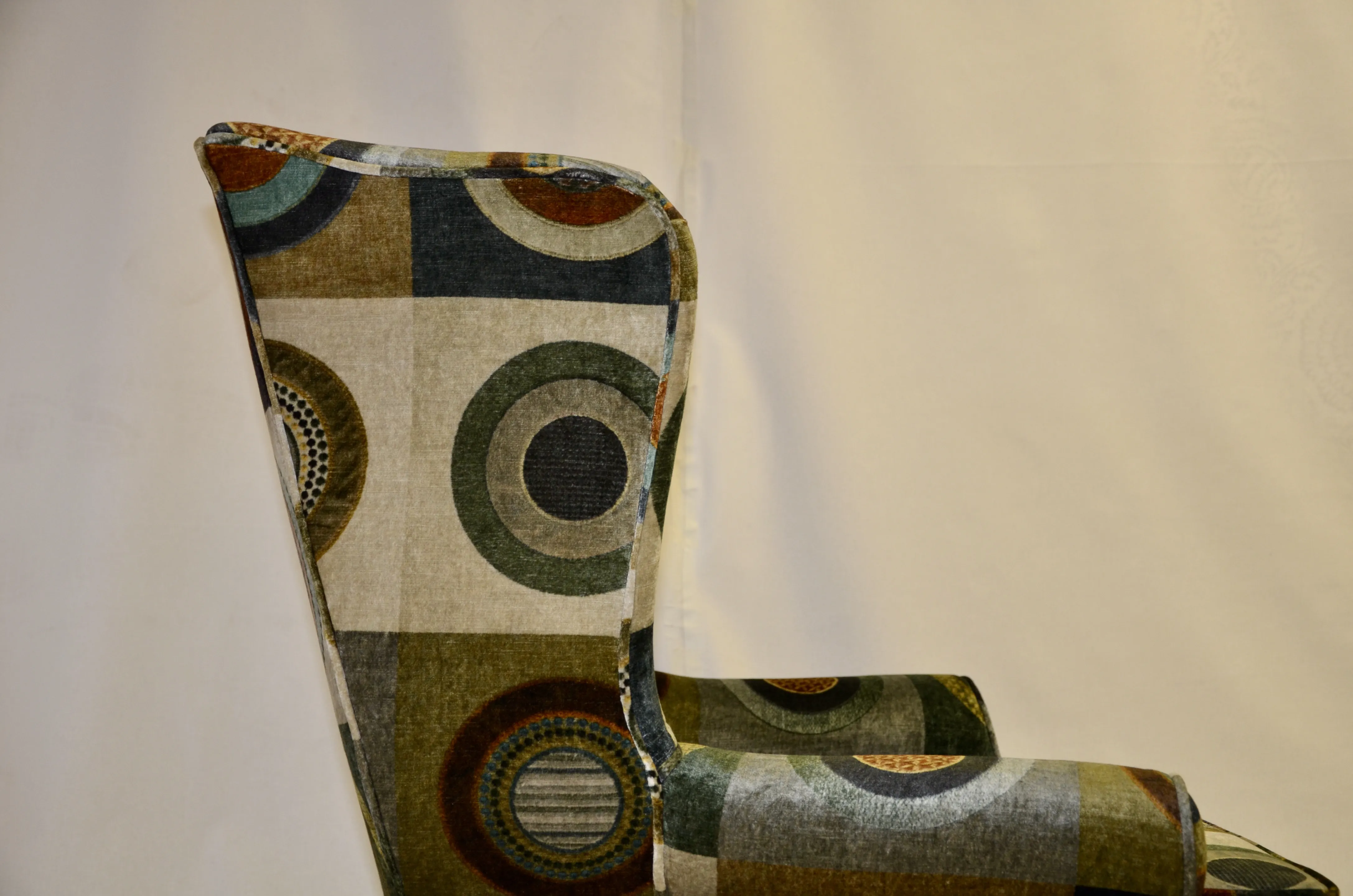 This grand wing chair has undergone a wonderful transformation, covered in the luxurious ‘Dress Circle’ velvet by GP&J Baker. Dress Circle is a 100% natural printed velvet composed of 55% viscose and 45% cotton, and its wonderful natural sheen and earthy rich tones are instantly relaxing. The scale of the print complements the shape of the wing chair perfectly creating a stunning work of art.