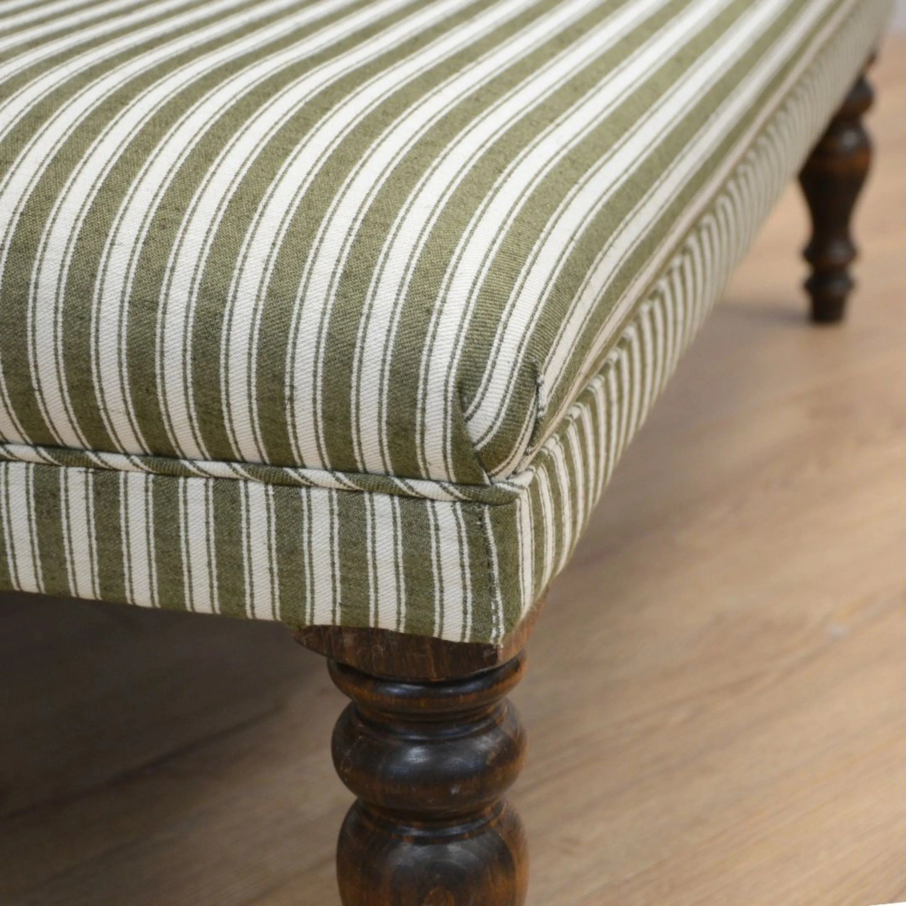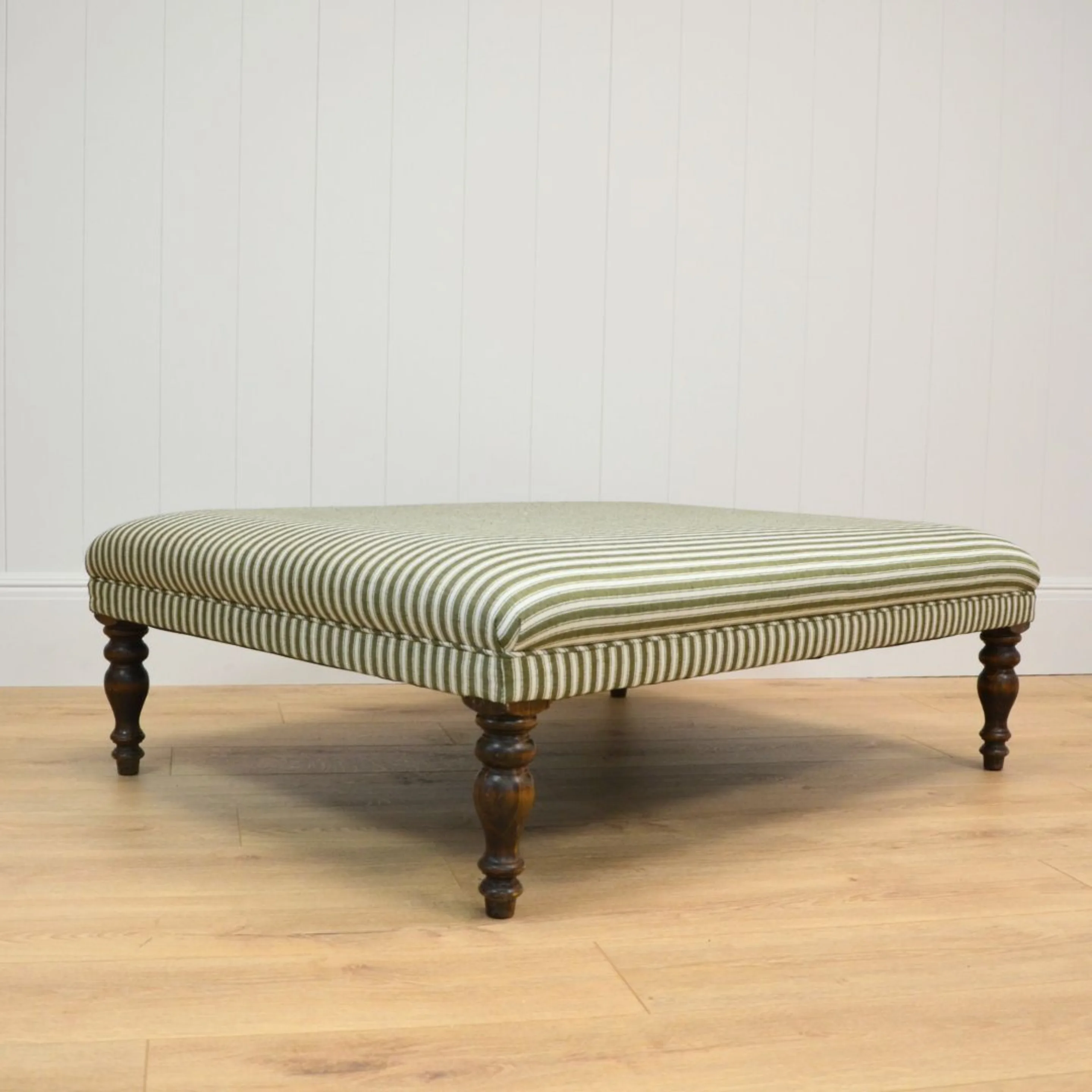 A striped ottoman works in most interior design schemes, the straight lines lend itself very well to a stripy fabric complementing the shape perfectly. All of our ottomans are handmade to order which means you can pick every last detail right down to the legs. They are not only beautiful but also provide a practical piece for furniture and a key centre piece to any room.